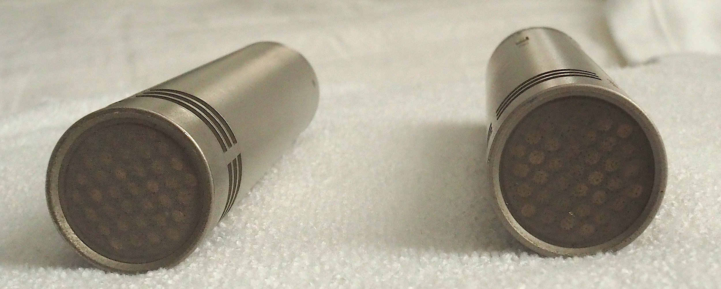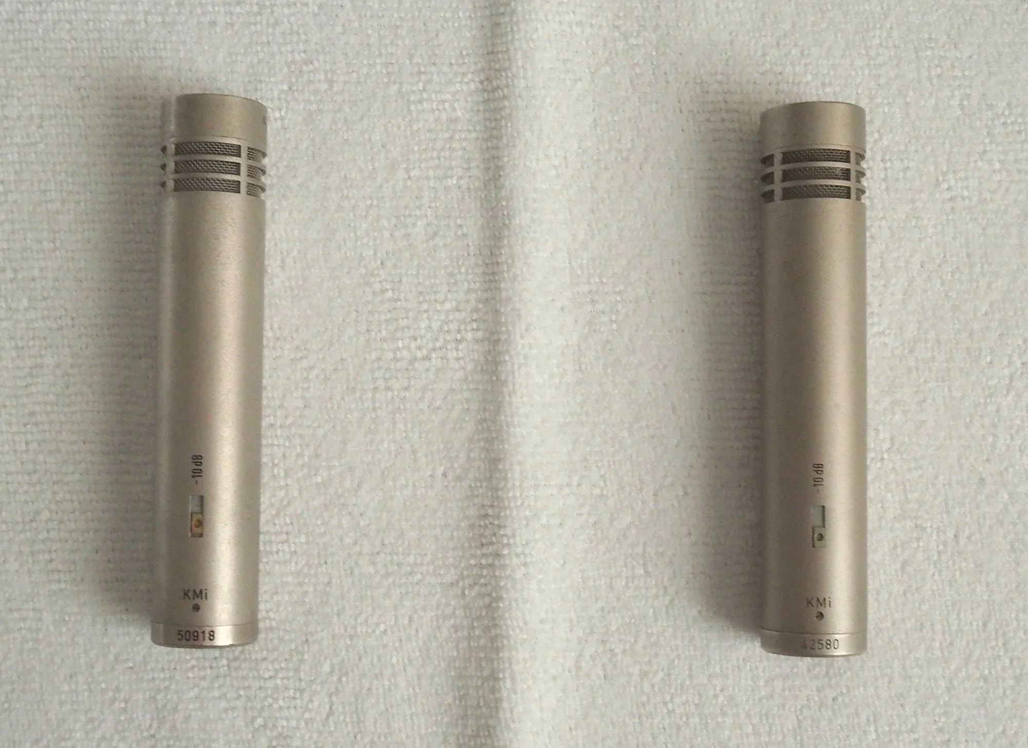Neumann KM-84 small diaphragm condenser pair. The transformer-coupled circuit and K84 capsule remain the reason engineers still seek these out decades after production ended. Good condition with normal vintage wear. Neumann badges missing. Both fully functional.